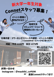 Connetを利用してくれていた方はもちろん、利用していない方でも積極的に地域交流を行いたい方やイベントを企画・運営をやってみたい方などのご応募お待ちしております✨